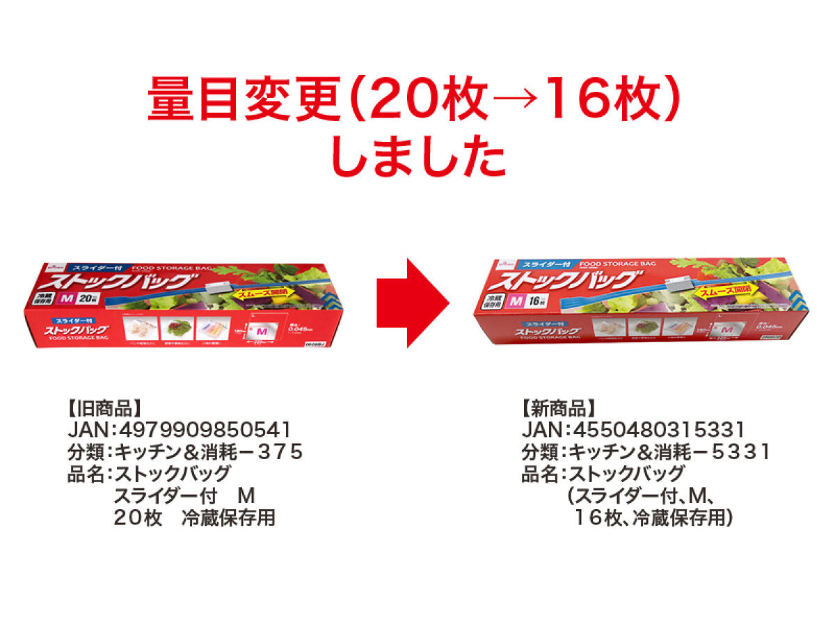 Food Storage Bag -With Slider - M - 16 PCS. - For Fridge-